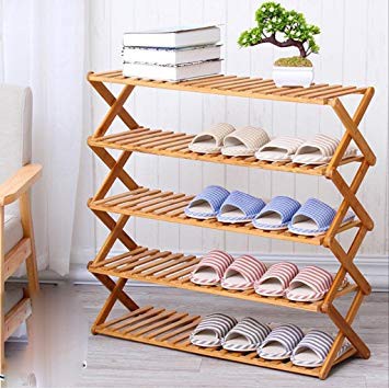 5 Tier Folding Bamboo Shoerock Rack Organizer Wooden Storage