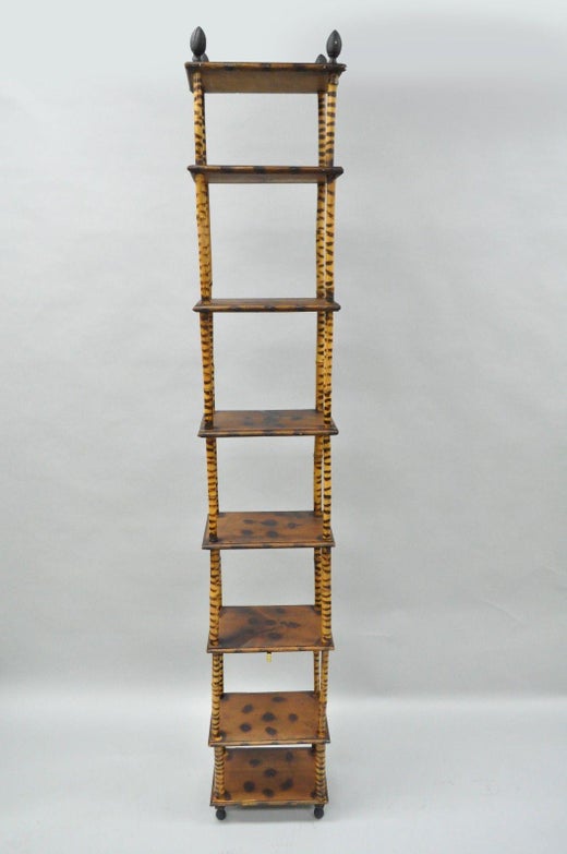 Tall Victorian English Charred Bamboo Stand Etagere Bookcase
