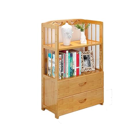 Dulplay Thickened With Drawer Bookcase Bamboo Wood Bookshelf