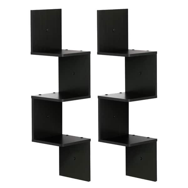 Buy Engineered Wood Zigzag Corner Wall Shelf In Black Colour By