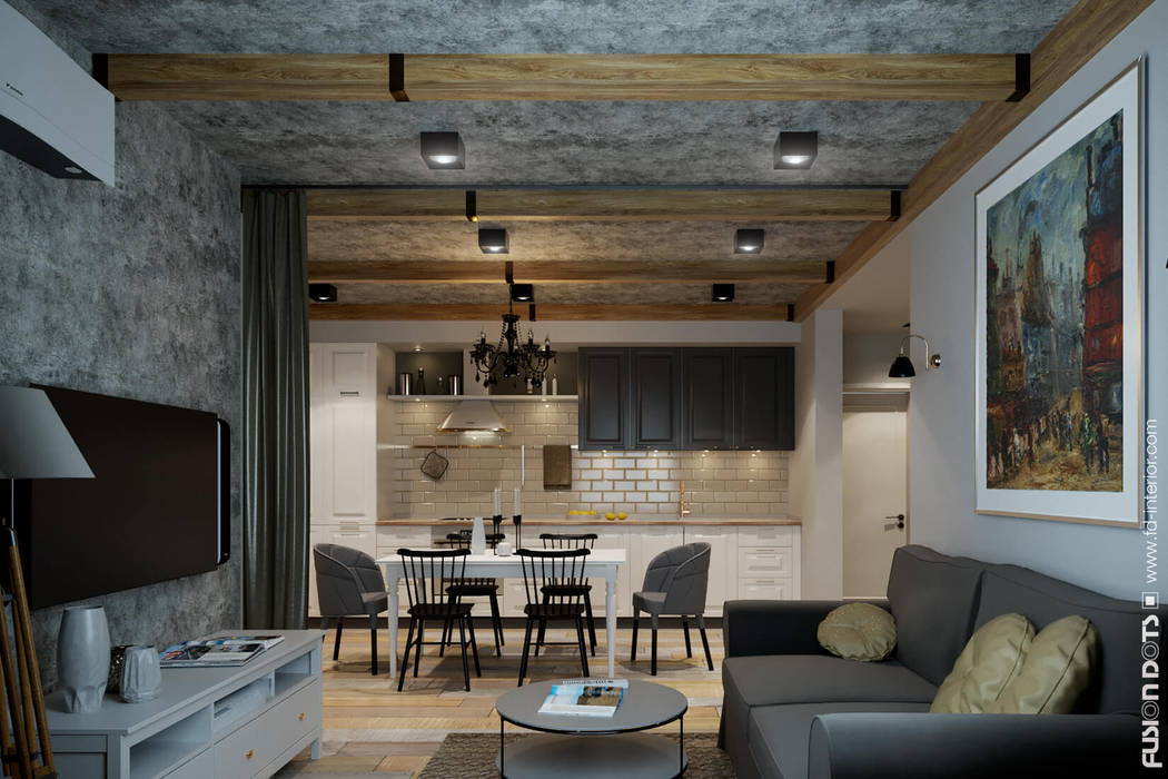 Scandinavian Studio Apartment With Living Room And Kitchen