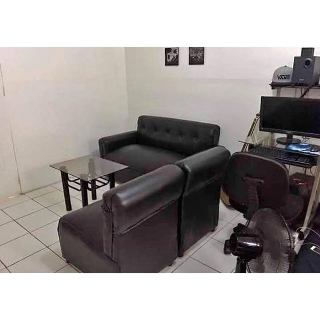 Sala Set Black Leather With Glass Table Free Delivery Shopee