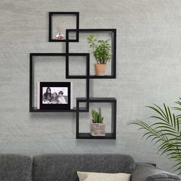 Shop Costway Black Intersecting 4 Square Floating Shelf Wall