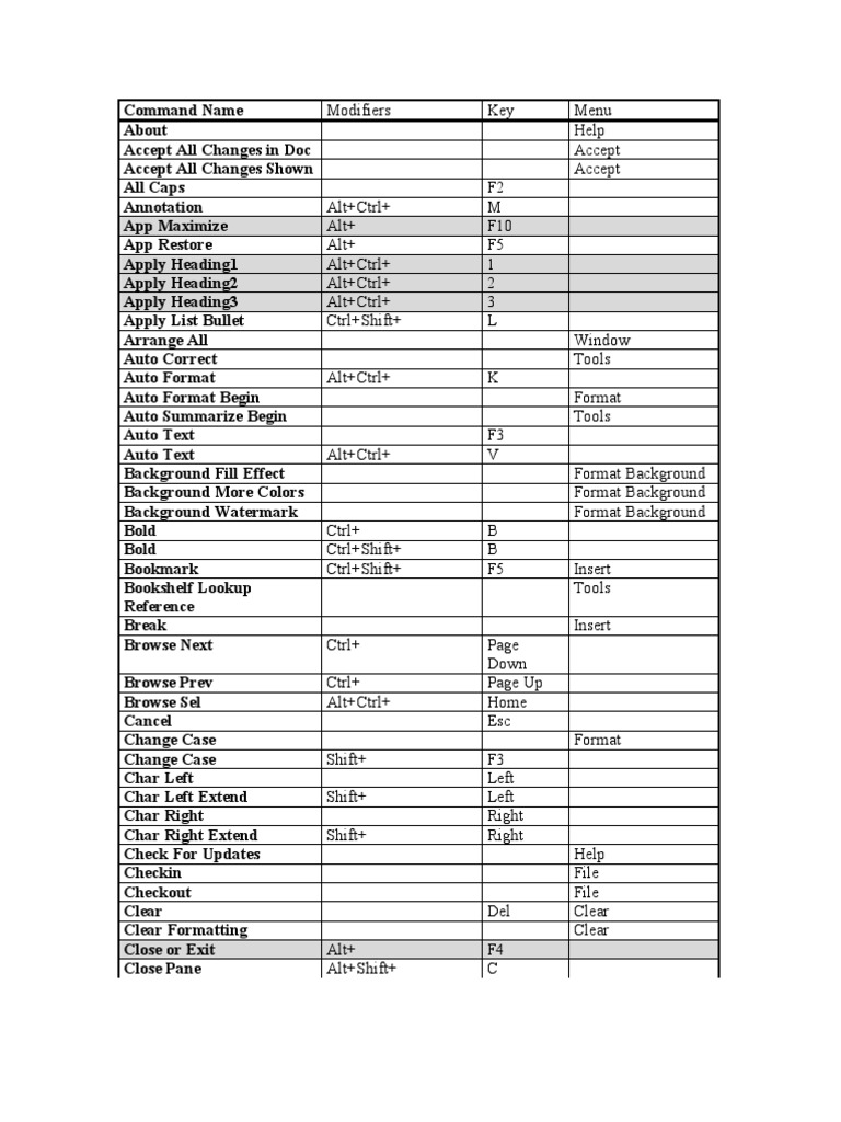 Word Shortcut Keys Hyperlink Typefaces
