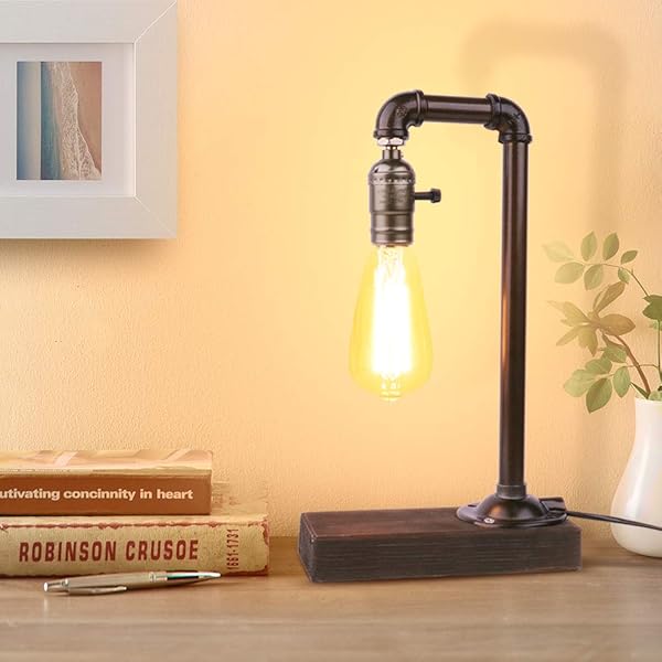 Industrial Table Lamp Edison Desk Lamp With Wood Base Vintage