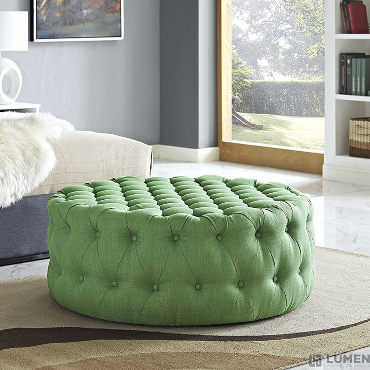 Amour Upholstered Fabric Ottoman In Kelly Green