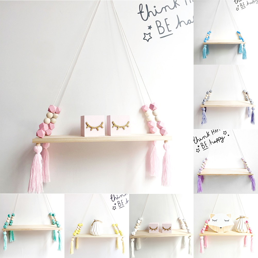 Wall Hanging Shelf Wood Rope Swing Shelves Baby Kids Room Storage