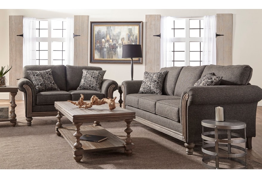 7900 S Hughes Furniture 7900 Living Room Wood Trim Sofa