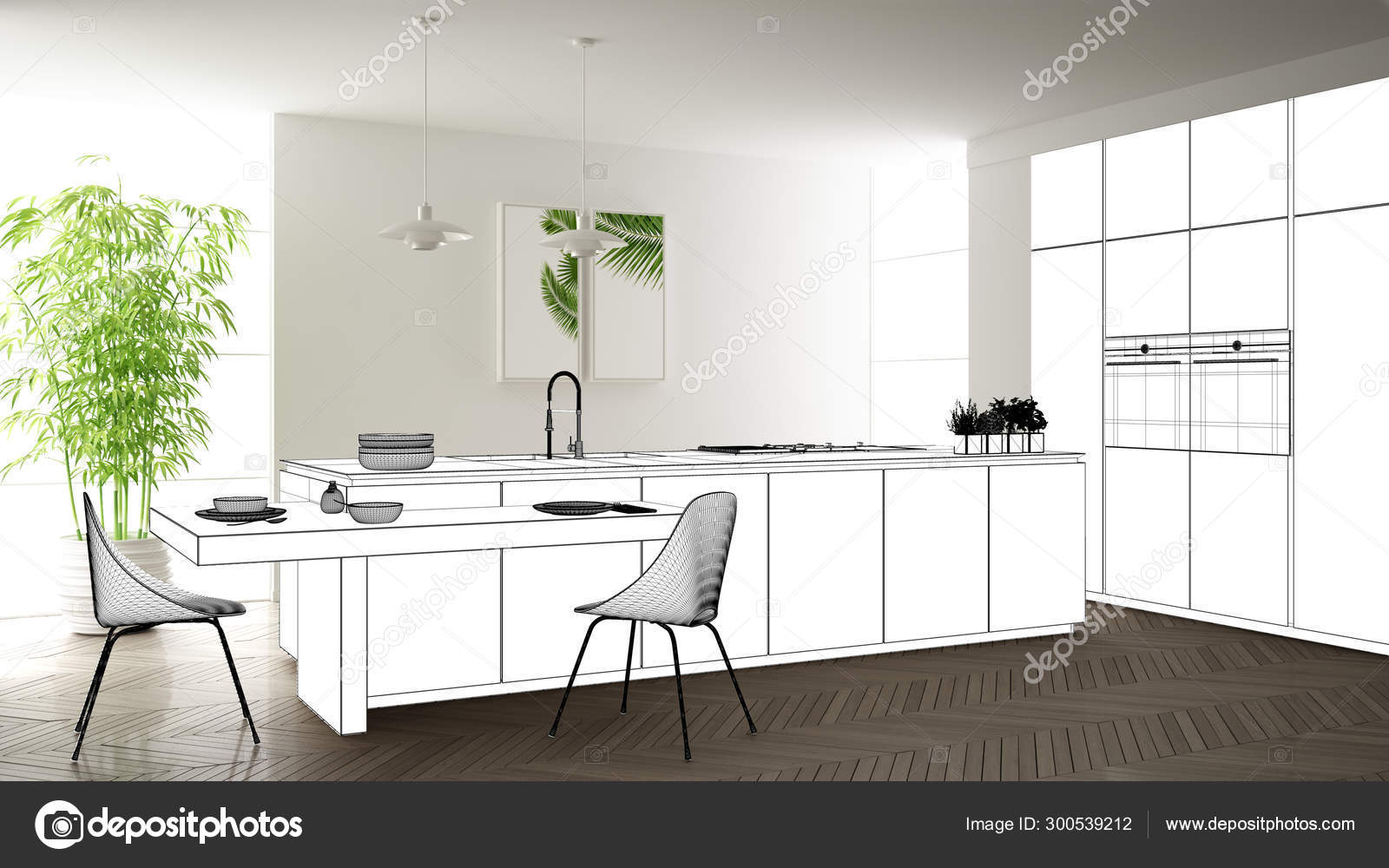 Blueprint Project Draft Sketch Of Minimalist Modern Kitchen With