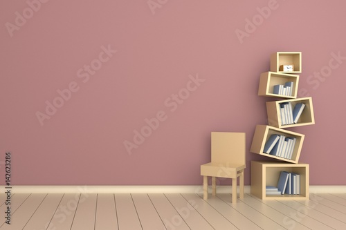 Pink Bookshelves In A Bedroom And Buy Image 00706062