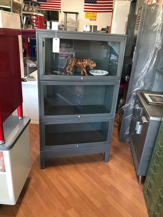 Barrister Bookcase Lawyer Bookcase Refurbished In Brush Steel Etsy