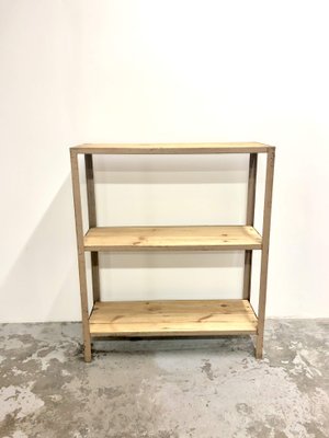 Mid Century Industrial Iron And Pine Shelf 1960s For Sale At Pamono