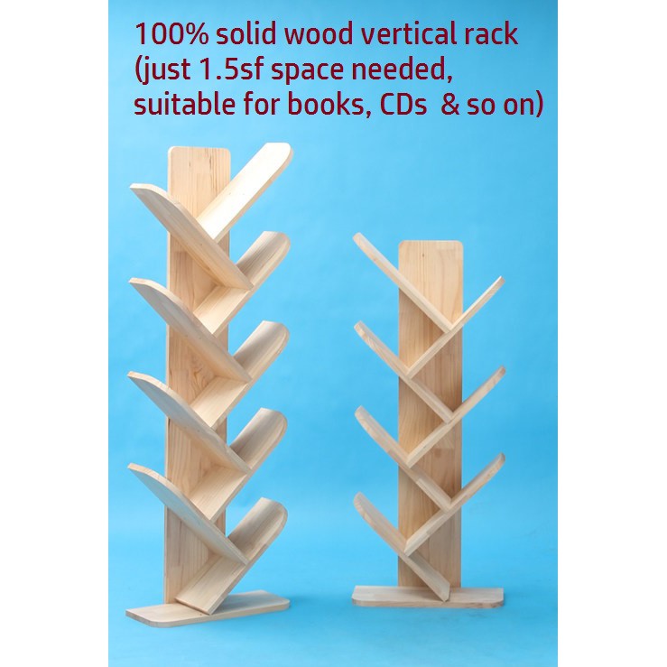 Solid Wood Vertical Tree Shelve Diy Wooden Bookcase Portable Cd