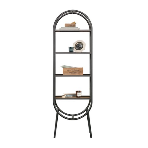 Sauder Steel River 3 Shelf Mobile Bookcase In Carbon Oak And Black