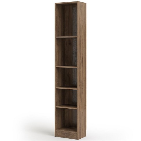 Morelia 5 Open Shelf Rustic Solid Wood Tall Narrow Bookcase